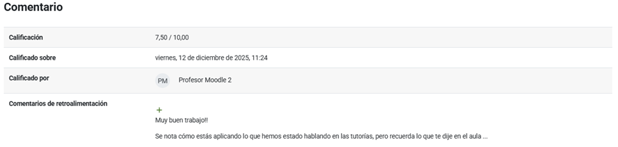 Cuando el docente corrija tu entrega, podrás ver desde esa misma página tu calificación y la retroalimentación que te proporcione.