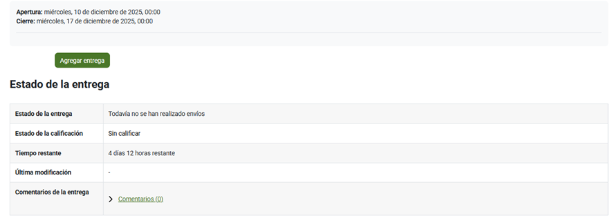 Nos lleva a otra página con información sobre la misma. Hacemos clic en Agregar entrega.