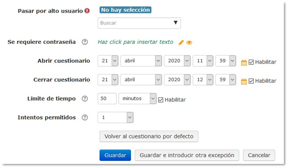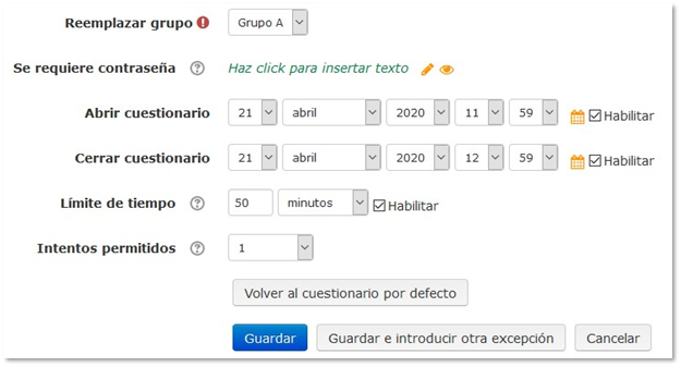 Es posible que en tu grupo haya estudiantes con necesidades especiales y quieras definirles unos plazos diferentes para resolver el cuestionario.