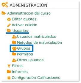 Desde el panel de administración del curso, hacemos clic en usuarios y en grupos.