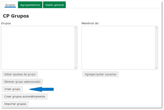 En la pestaña de gestión de grupos, hacemos clic en crear grupo.