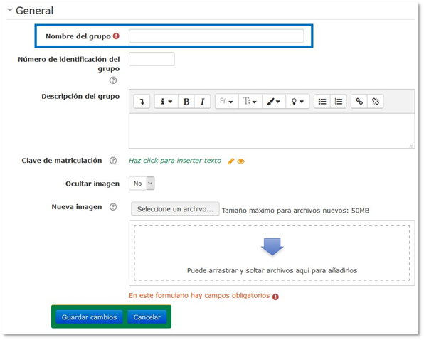 Completamos el nombre del grupo y hacemos clic en guardar cambios.