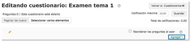 Nos llevará a una nueva ventana, pulsamos sobre Agregar (en la esquina inferior derecha) y sobre la opción “banco de preguntas”.
