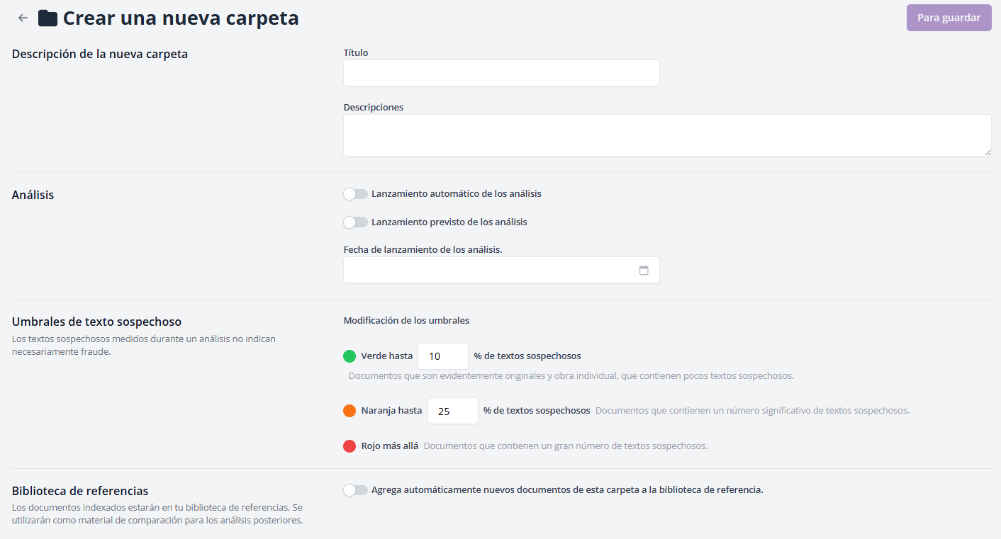 Lo mejor para gestionar un gran volumen de entregas es almacenarlas en diferentes carpetas, así podremos localizar fácilmente todos los archivos. Ahora bien, cuando creamos una carpeta nueva donde almacenar las entregas, debemos configurarla para automatizar el análisis.