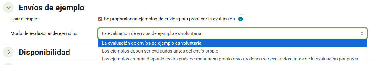 Para facilitar al alumnado con menor experiencia la evaluación entre compañeros, podemos activar esta opción para proporcionar a los estudiantes una entrega de ejemplo que evaluar.