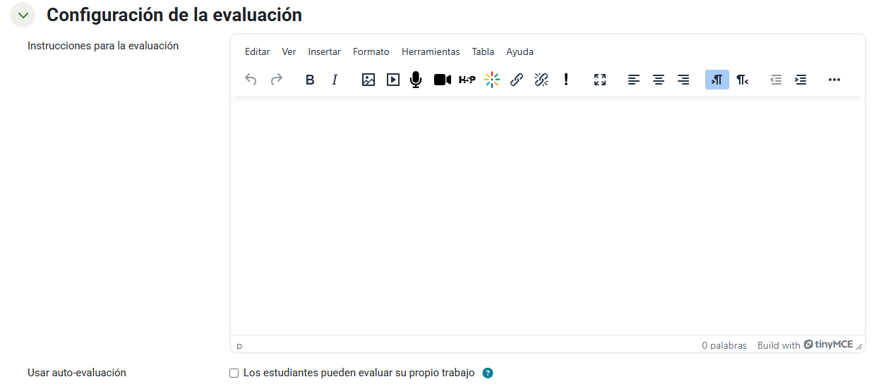 En añadido, podremos marcar la casilla para permitir la autoevaluación del alumnado, permitiendo que califiquen su propio trabajo.