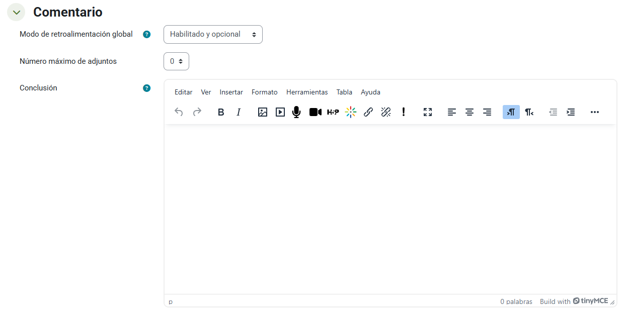 Desde aquí podremos activar o desactivar la retroalimentación, además de marcarla como opcional u obligatoria.