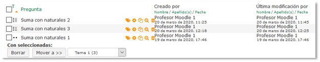 Desde aquí es posible editar la pregunta, duplicarla, ver cómo ha quedado o eliminarla. No te preocupes si te has confundido y la has creado en la categoría que no es, puedes moverla a otra.